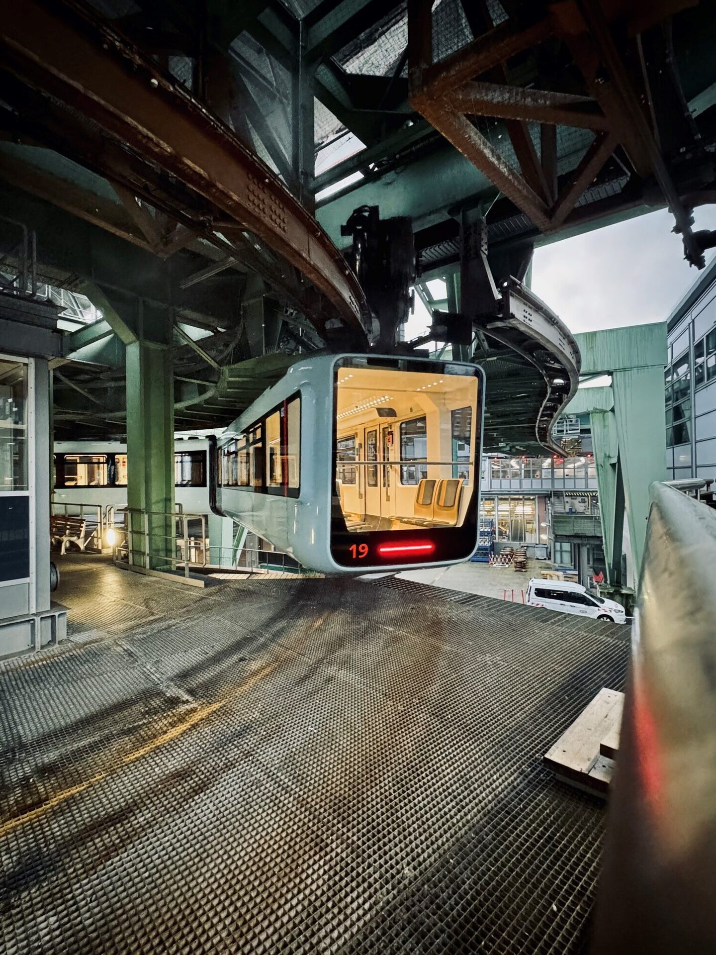 Unser Foto des Monats kommt von Sonja und ist an der Endstation Vohwinkel entstanden. Ungeplant hatte Sonja die Gelegenheit, die Haltestelle zu erkunden und in Ruhe den Schwebebahnbetrieb zu beobachten. Die Kehre und die Weiche an dieser Stelle haben sie dann so in den Bann gezogen, dass sie ihr Handy gezückt hat.
