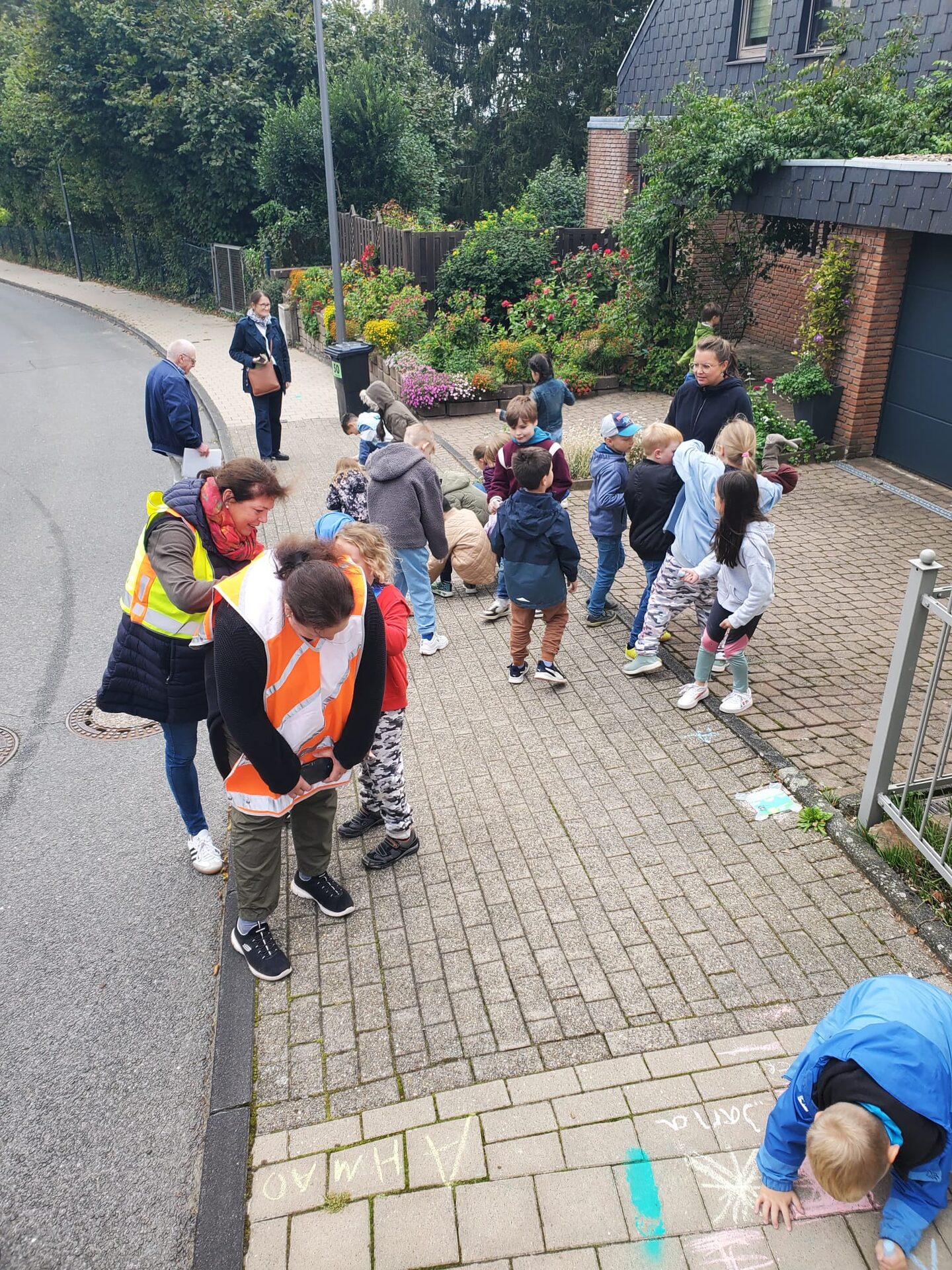 Im Rahmen des Aktionstags haben die Grundschulkinder der Peterstraße eine Schnitzeljagd zu den Elternhaltestellen gemacht. Sie haben dadurch spielerisch erlernt, wie sie den Weg von den Elternhaltestellen eigenständig und sicher zurücklegen können. Die Kinder hatten viel Spaß und haben den abwechslungsreichen Schultag genossen.