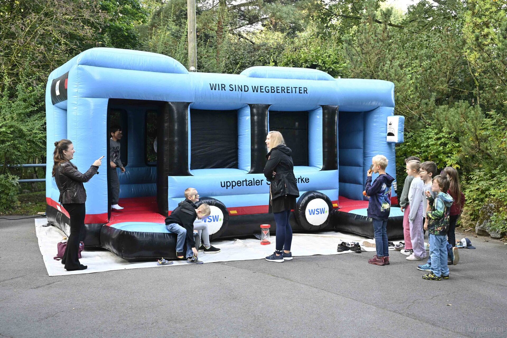 Am Radenberg wurde spielerisch und künstlerisch auf die beiden neuen Elternhaltestellen aufmerksam gemacht. Die Straße wurde an diesem Tag für verschiedene Spiele (Hüpfburg, Glücksrad Tombola, Slackline zum balancieren) und Bildungsangebote (Hör, Seh-, Reaktionstest, Johanniter Rettungswagen) genutzt.