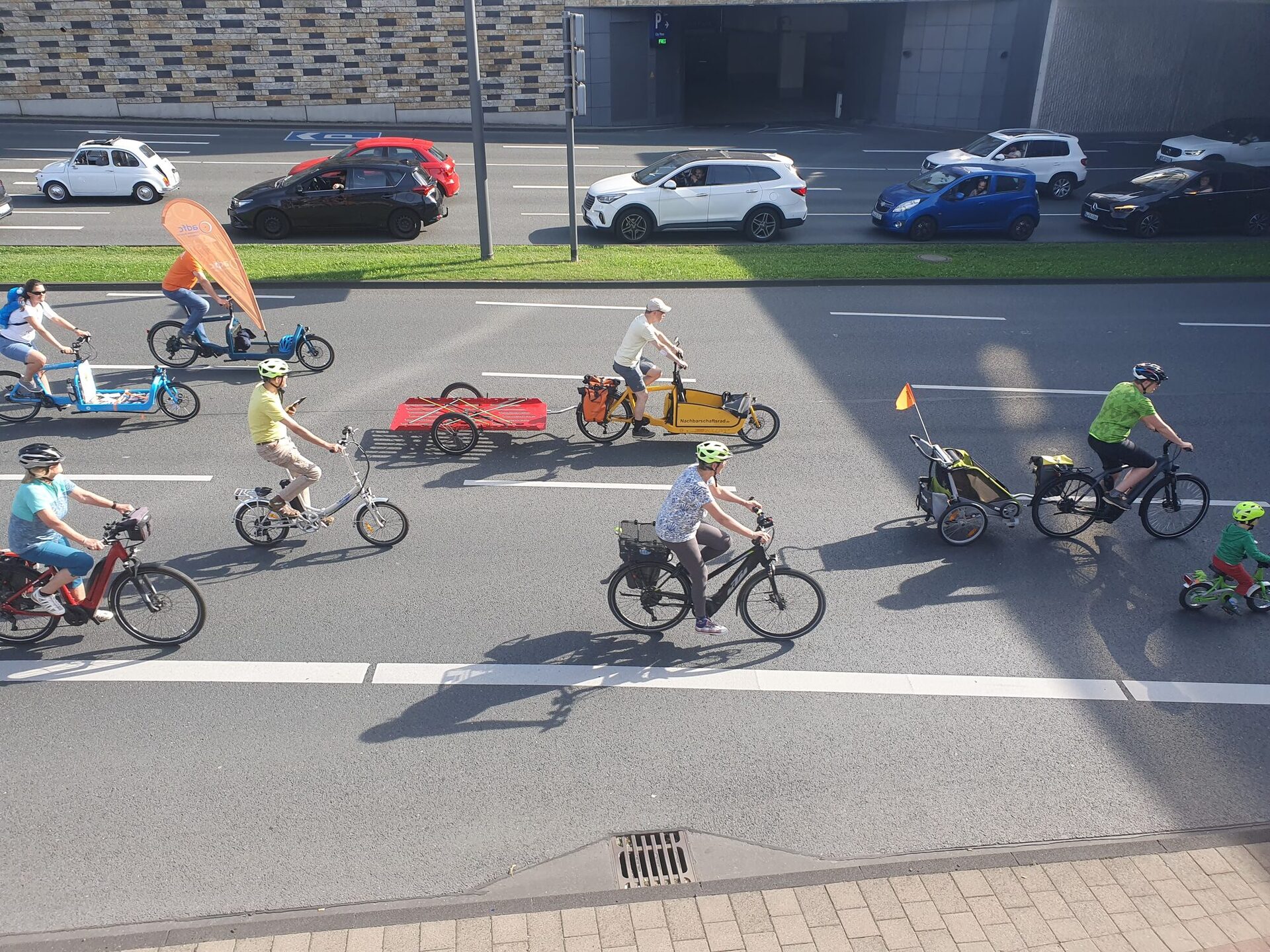 Ums Fahrrad ging es beim Abschluss der Europäischen Mobilitätswoche in Wuppertal: Zur kidical mass waren Kinder und ihre Eltern eingeladen. Viele Eltern und Kinder – teils im Lastenrad sitzend, teils auf eigenen Rädern – beteiligten sich an der Fahrraddemo für sichere Radwege für Alle. In Begleitung der Polizei fuhren die Kleinen und Großen sicher auf der B7 von Barmen bis zum Gutenbergplatz am Arrenberg.
