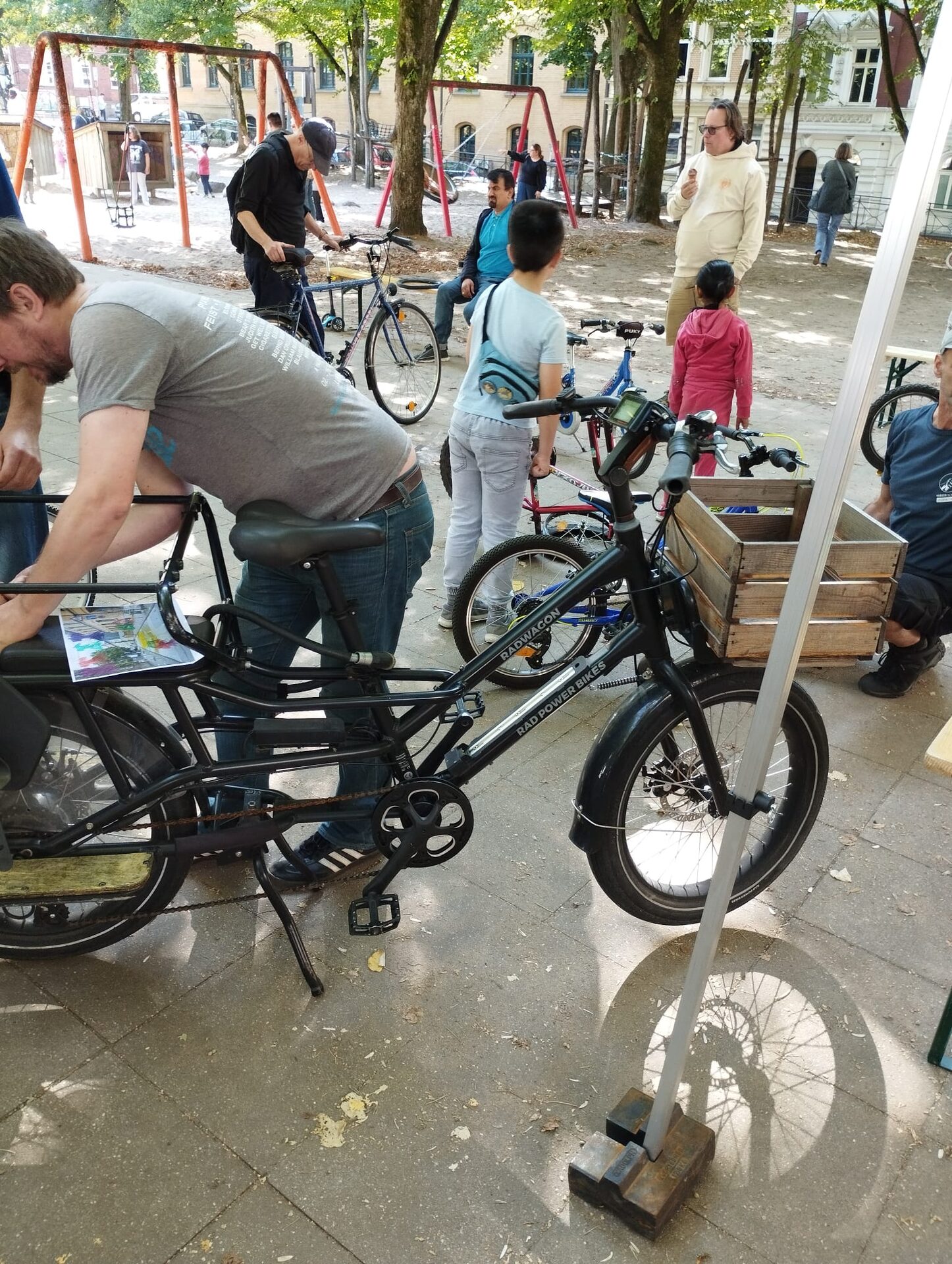 Beim Tag der Mobilität am Schusterplatz kamen bei bestem Wetter viele Besucher. Das Angebot umfasste unter anderem eine Fahrradreparatur-Werkstatt, die sehr gut besucht wurde, eine Fahrradbörse, ein Planungsspiel zur Quartiersgestaltung und weitere Angebote zum freien Meinungsaustausch. Die Kinder konnten sich über Geschicklichkeits- sowie Malangebote freuen und natürlich auch über den angrenzenden Spielplatz.