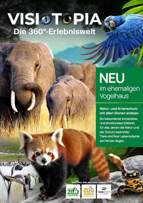 Mit Visiotopia erhält das 1960 eröffnete Vogelhaus, das Anfang 2024 geschlossen wurde, da es den hohen Standards der Tierhaltung im Grünen Zoo Wuppertal nicht mehr genügte, eine völlig neue Bestimmung: Die Besucherinnen und Besucher erwartet in Visiotopia eine spektakuläre Reise durch die Lebensräume, die der Grüne Zoo Wuppertal mit seinem Naturschutzeuro schützt und unterstützt.